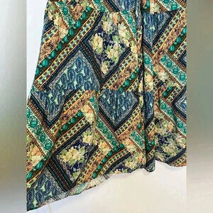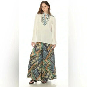 The detailed square and floral pattern complements the earthy-toned color palette on the Rivera tiered pants. Infused with a bohemian aesthetic, these pants are