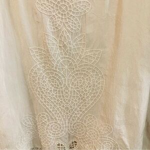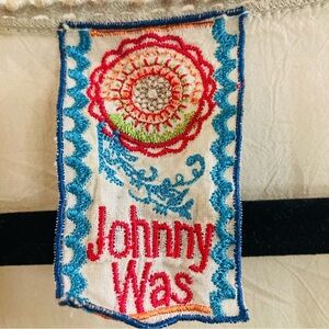 JOHNNY WAS Sz L 100% Cupro Rayon Embroidered Trim Semi Sheer Cream Blouse Gorgeous blouse that is lovely and breezy. No size tag. Please check measurements. Pull tabs on sleeves.