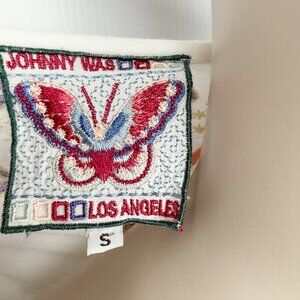 JOHNNY WAS White Embroided Colorful Red Blue Pink Floral Patterns Top sz Small