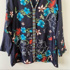 JOHNNY WAS-BECCA 100% Silk Floral Pattern Tunic Top (Small)