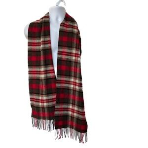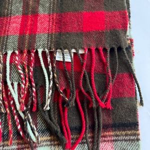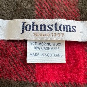 JOHNSTONS Scarf Rectangle Check Plaid Merino Wool & Cashmere Red Green Scotland