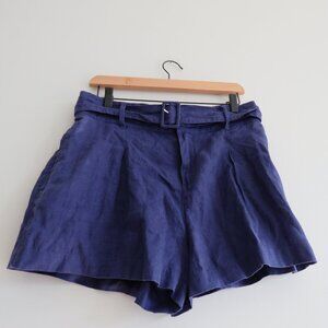 JOIE 100% Linen Belted Pleated Pocket Shorts in Purple Preppy - Size M