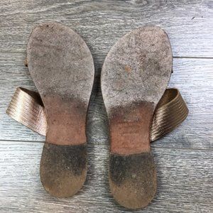 Gold detail on strap. Leather. Note that one of the soles was coming apart so glue has been applied-may be glue residue but doesn't show when you are wearing them. These have lots of wear-see pictures but so much life left. Size 36