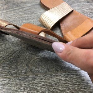 JOIE A La Plage Leather Tan/Gold Slip On Sandals