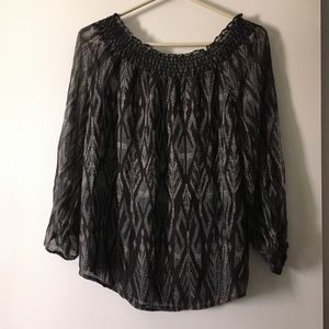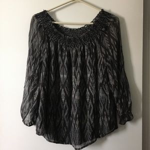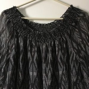 JOIE Black Print Silk Chiffon Smocked Blouse XS