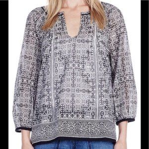 JOIE Cherre Top Artisan Blouse Geometric Boho Pattern Aztec Tribal Print Goddess