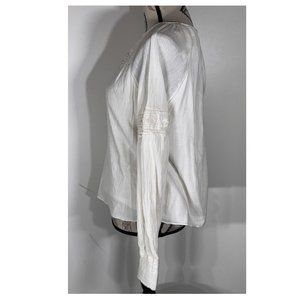 JOIE Mitney Embroidered Peasant Blouse Lined Damask Floral White Cotton Size S