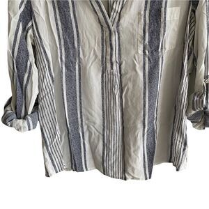 JOIE Silk Striped Popover Blouse With Roll Sleeves