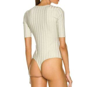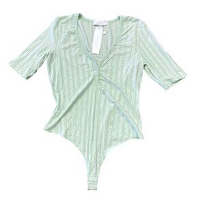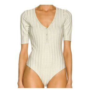 JONATHAN SIMKHAI XS Bodysuit Connie Womens Button Front VNeck Lichen Green New
