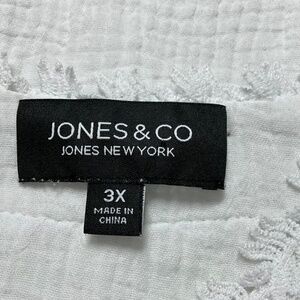 JONES & CO White Slub Textured 100% Cotton Lace Trim Batwing Short Sleeves 3X