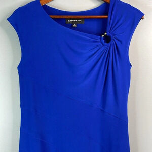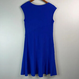 JONES NEW YORK Asymmetrical Ring Royal Blue Fit & Flare Midi Dress Cap Sleeve 6