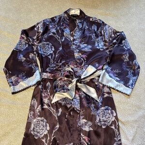 JONES NEW YORK Kimono Women’s Small Wrap Robe Purple Floral Belted Luxury