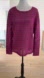 Jones New York bright pink long sleeve sweater has a round neck and an open knit or crochet look. No material tag, I would say this is polyester. The sleeves and hem have a rolled effect.