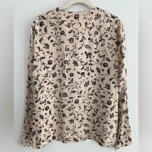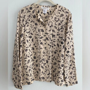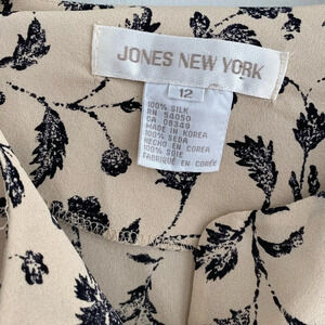 JONES New York 100% Silk Floral Tan Blouse Size 12