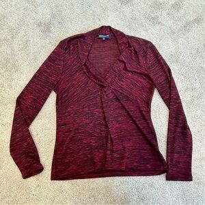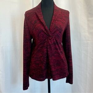 Jones New York Signature Petite Ruched heathered red long sleeve top blouse Sz M