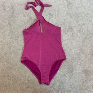 Jones New York Women's Solid Glitter One Piece Swimsuit Fuchsia Sz L NWT