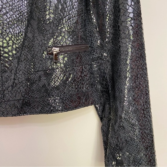 JONES New York black crop jacket shinny genuine leather soft contemporary spakle