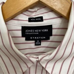 JONES NewYork button down shirt non iron stretch striped white red black size 16