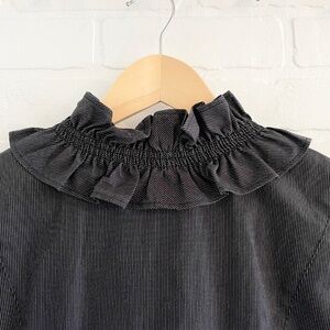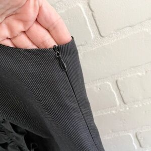 JOSEF Pencil Dress Pinstripe Charcoal Black/White Ruffled V neckline Luxury 10