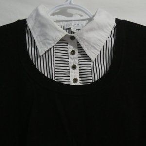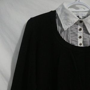 JOSEPH A. | medium | Pullover Sweater With Faux Striped Shirt | Rolled Cuffs