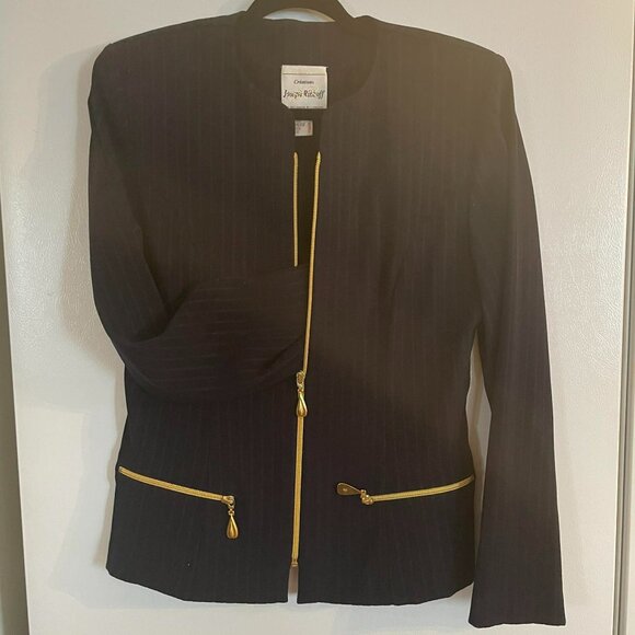 The bazer features a golden zip up closure and on the front, two decorative golden zip simulating pokets