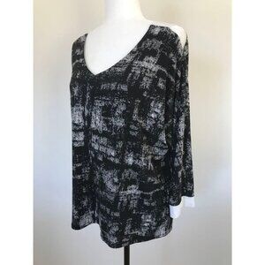 JOSEPH RIBKOFF 3/4 Sleeve Top Size 12 Black White Strap Shoulder Cuffs Stretchy