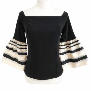 JOSEPH RIBKOFF BLACK BEIGE MESH TEE STRIPED BELL SLEEVE TOP - 8