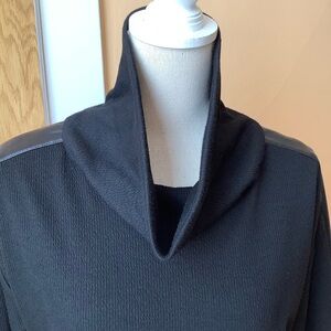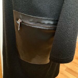 This sweater dress is perfect for those days when you want to feel put-together and cozy. The sweater knit is soft and luxurious, while the faux-leather accents add just the right amount of edge. The funnel collar keeps you warm and stylish, while the three-quarter sleeves are flattering and comfortable. And don't forget the side pockets - they're perfect for carrying your essentials. Whether running errands or heading to a meeting, this dress will make you look and feel great.