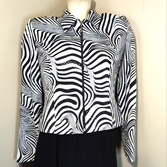 JOSEPH RIBKOFF Black White Zebra Sequin Women's Jacket 8