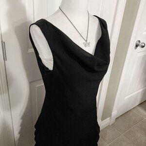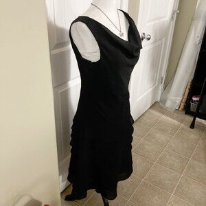 JOSEPH RIBKOFF Black sleeveless cowl neck tiered a-line dress ~ SMALL goth dress