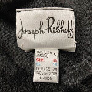 Hailing from the brand Joseph Ribkoff and dating to c. 1990s - 2000s (possibly a little newer than that), this well-made dress is light to light-medium weight, fully lined, NOT stretchy, does not include any zippers or other fasteners (aka, it is a pull-on garment), and is comprised of 100% polyester.