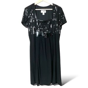 JOSEPH RIBKOFF Bubble Hem Empire Cut Square Neck Dress Black Patent Trim Sz 14