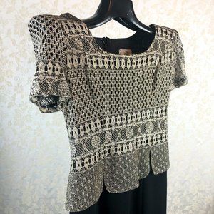 JOSEPH RIBKOFF Metallic Gold Lace Overlay Black Vintage Maxi Dress Gown
