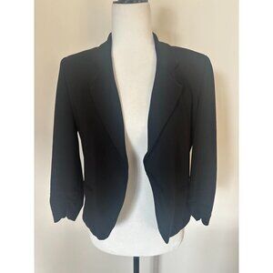 JOSEPH RIBKOFF Short Jacket Blazer Size 8 Black Open Cover Up Ruched 3/4 Sleeves