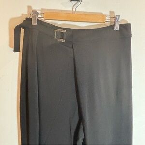 JOSEPH RIBKOFF Sz 8 Cross Over Square Buckle Belt Tapered Leg Slinky Pants. Contemporary. Unique. Statement piece. Dress up or down.