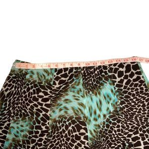 JOSEPH RIBKOFF Turquoise with Dark Brown Leopard Print Ruffle Hem Skirt Sz 16