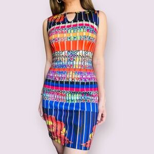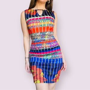 Size 4. Good condition. Very vibrant colours, comfortable. Gold hardware at collar bone.