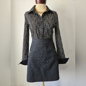 JOSEPH RIBKOFF Vintage Black, Gold Blouse-Satin Collar, French Cuffs. Size 10