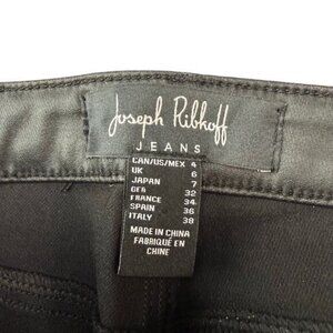 JOSEPH RIBKOFF Waxed Slim Fit Jean Size 4 Black Metallic Pattern Hem Detail