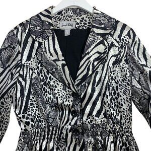 JOSEPH RIBKOFF Womens Sequin Jacket Sz 14 Animal Print Black White Lined