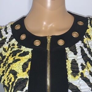 Joseph Ribkoff Yellow Leopard Animal Print Zip Up Dressy Sequin Gathered Jacket size 8