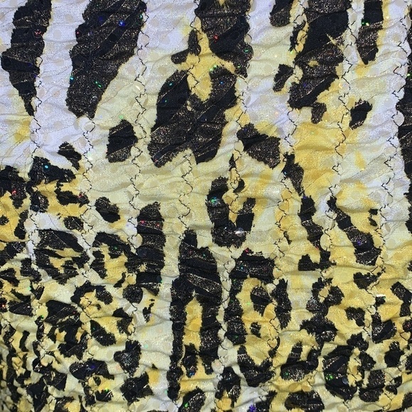 Joseph Ribkoff Yellow Leopard Animal Print Zip Up Dressy Sequin Gathered Jacket size 8