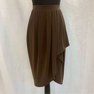 Joseph Ribkoff chocolate brown pleated tulip wrap skirt Sz 8 stretchy spandex