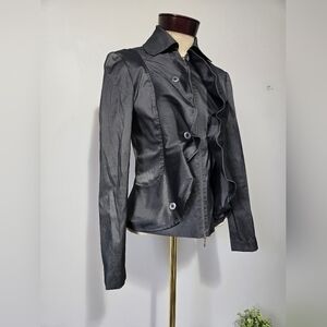 Gorgeous fitted designer ruffled jacket. Full front zipper closure. Canadian designer.