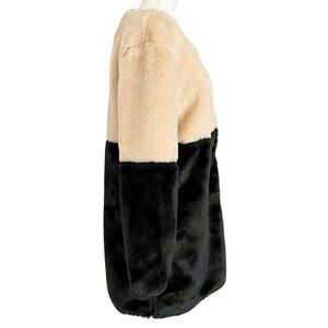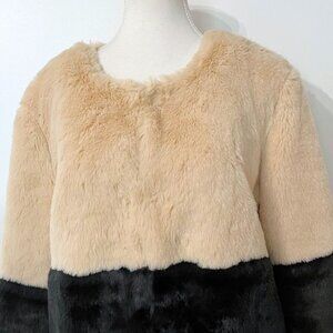 JOVONNA LONDON CREAM BLACK COLORBLOCK FAUX FUR JACKET COAT - 8 (12UK)
