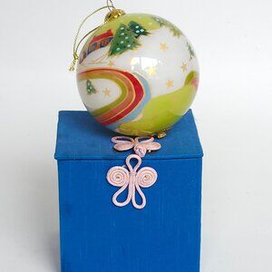 JOYFUL PIER 1 SNOWMAN Train ORNAMENT 2009 Li Bien Glass Bulb Ornament