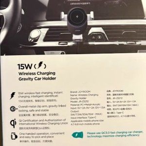 JOYROOM 15W WIRELESS CHARGING GRAVITY CAR HOLDER W/ VENT CLIP