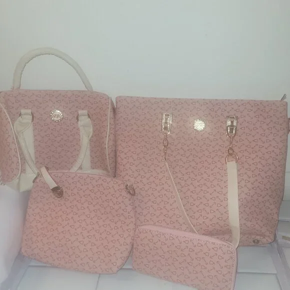 Set Comes With Shoulder Bag, Wallet, Hand Bag, Make Up Bag & Wallet. A bit of natural wear and tear, used a few times in excellent condition.