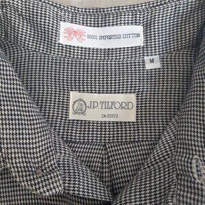 J.P. Tilford SZ M Black & White Woven Houndstooth Men's Cotton Button Up Shirt