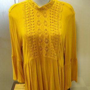 JPR Lace-Trim Peasant Top, Golden Yellow NWT.